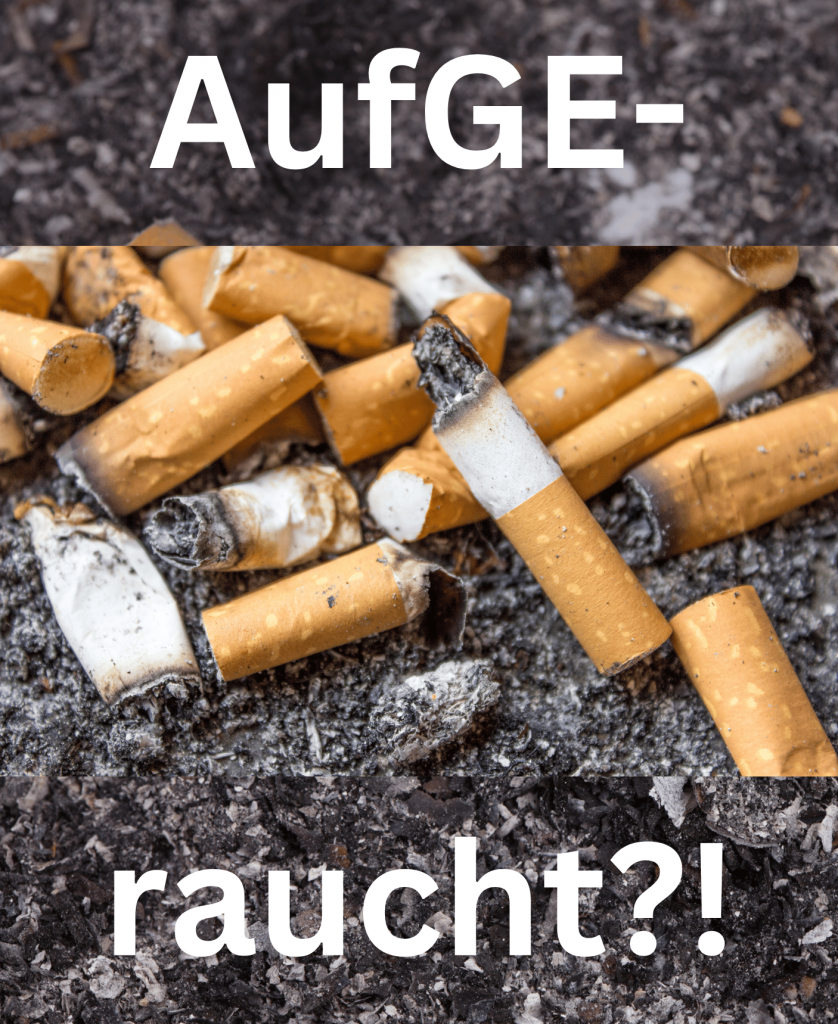 Das Sammeln von Zigarettenkippen hat tatsächlich einen erheblichen Einfluss auf die Umwelt. Schließe dich der Aktion von AufGEraucht an und hilf dabei, Zigarettenkippen zu sammeln. Jede Kippe, die du aufhebst, trägt dazu bei, unsere Umwelt sauberer und gesünder zu machen. Du kannst einen direkten Einfluss auf die Umweltverschmutzung haben und gleichzeitig ein Vorbild für andere sein. Also schnapp dir einen Beutel,          geh raus und sammle Kippen!